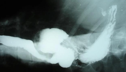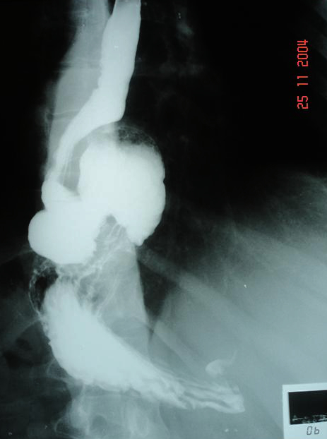Radiografia mostrando o estômago dentro do tórax (hérnia de hiato grande)