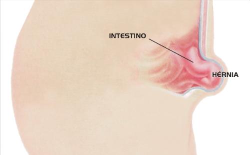 Hérnia é a protrusão ou saliência de uma víscera ou órgão através de uma abertura na parede abdominal. Ela pode ocorrer em vários lugares, principalmente na região inguinal (hérnia inguinal), no umbigo (hérnia umbilical) e acima do umbigo (hérnia epigástrica).